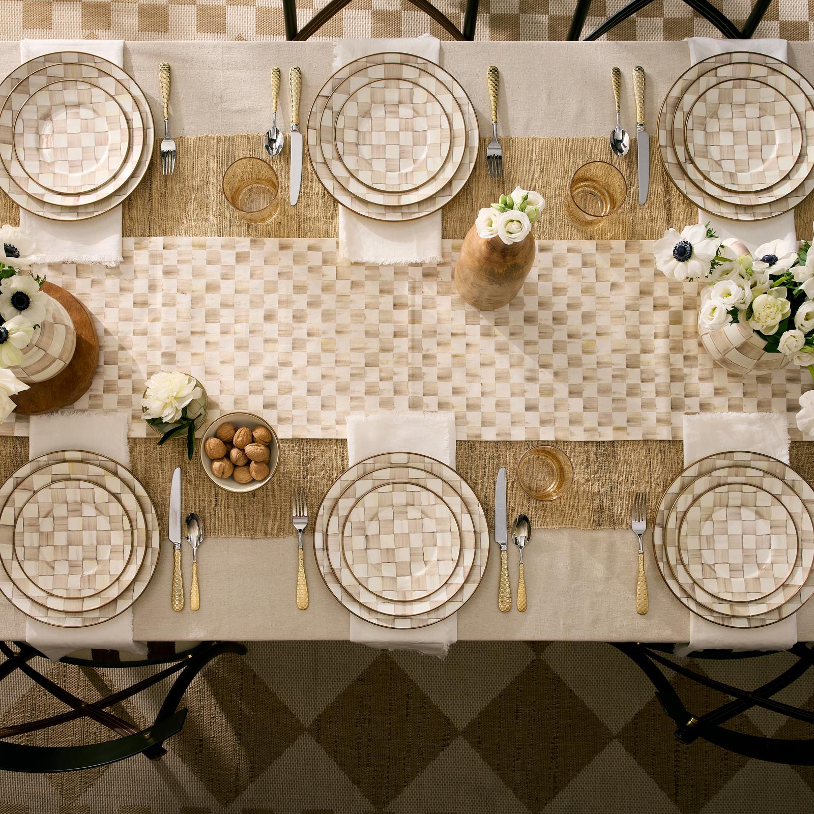Dress your sideboard in our Mocha Check Table Runner that captures our coffee-colored check pattern so well it almost looks hand-painted. Made of 100% cotton, it’s bordered with complementary Mocha Stripe and reverses to mocha cotton.