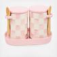 Store kitchen staples in the ceramic Rosy Check Farmhouse Canisters, sold as a set of two. They feature hand-applied Rosy Check transfer decoration and have a handy small wooden spoon attached, making it convenient to dole out a dash of flour, sugar, coffee, and whatever else you store inside!