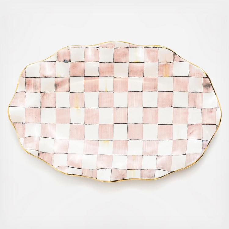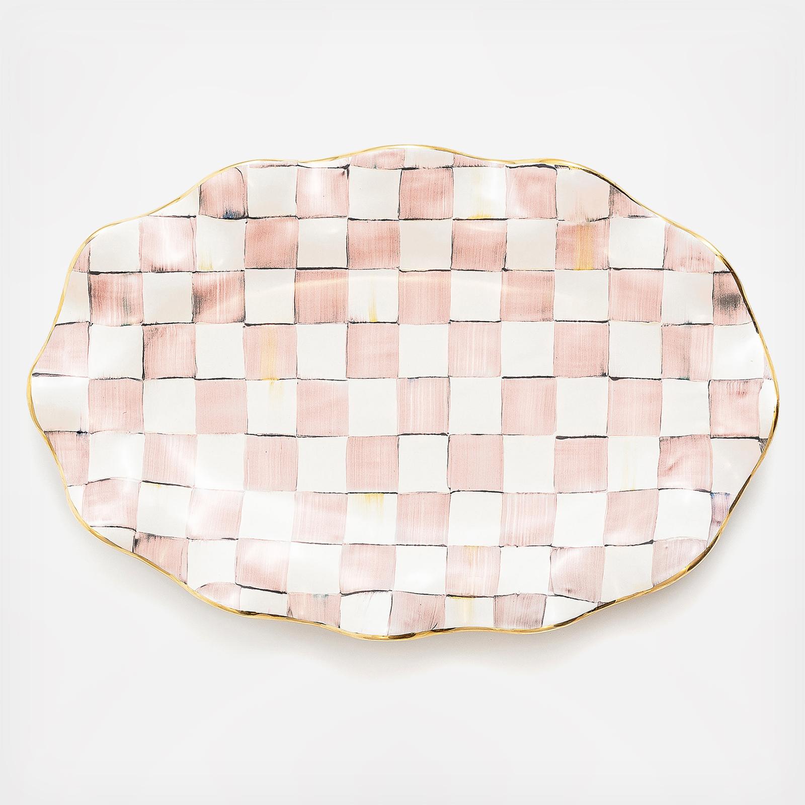 With the flowing ripples of its fluted rim and handsome pattern, the hand-painted Rosy Check Ceramic Serving Platter will present your dish with the fanfare it deserves. Handmade and hand-painted in a range of rosy hues, it’s trimmed with gold lustre and stamped by the Aurora artisans involved in its creation.