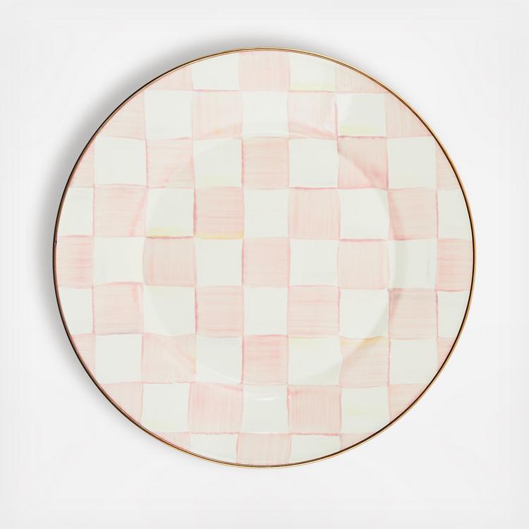 Set a place at the table for our Rosy Check Enamel Dinner Plate. Similar in theme to our signature Courtly Check® enamel pattern, Rosy Check checks all our boxes. It’s pretty, it’s classic. The heavy-gauge steel underbody is glazed with hand-painted, color-dragged checks in a range of rosy hues and rimmed in bronzed stainless steel.
