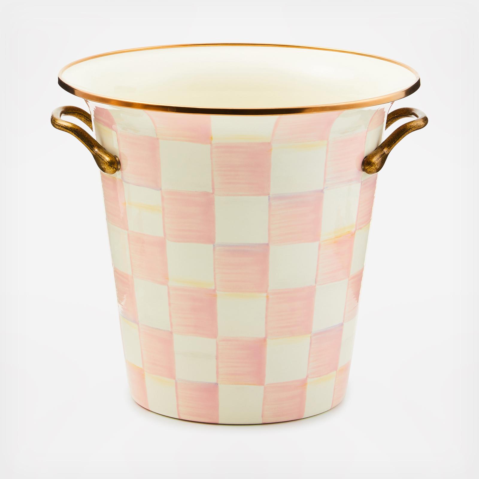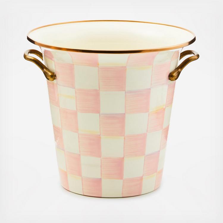 Chilling wine is just the warm-up act for the Rosy Check® Wine Cooler, hand-painted in a range of pink checks. Fill it with showy sunflowers, sand to hold candles, or popcorn for movie night. Pair with a fine vintage wine and a set of our hand-painted glasses for a memorable gift. Antiqued brass handles. Pieces may vary due to the handmade nature of each product.