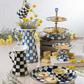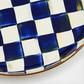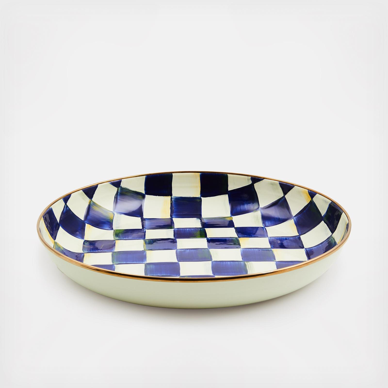 Add a versatile do-it-all piece to your kitchen and table. The Abundant Bowl handles serving in style. Its upturned edge is especially handy for presenting main courses that have a bit more sauce, like a heaping bowl of pasta. Heavy-gauge, hand-glazed steel underbody with hand-painted checks in a range of blue hues and a bronzed stainless-steel rim.