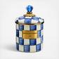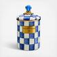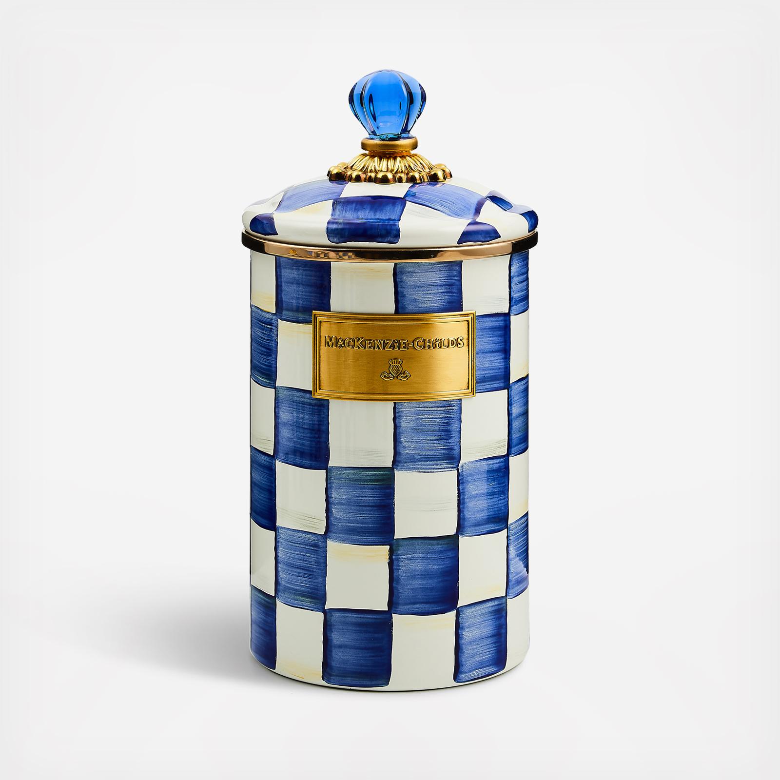 Pantry staples flour, sugar, and coffee might seem the most obvious of contents with which to fill a Royal Check Canister, but the possibilities are endless. Keep it in the kitchen with coffee beans and tea bags, cookies and candies, or dog biscuits and birdseed or invent new uses around the house. Each enameled steel canister is hand-painted with color-dragged checks in a range of blue hues and topped with an elegant blue glass knob. Because each piece of Royal Check reflects the artisan’s hand, no two are exactly alike, although they all work together in perfect harmony.