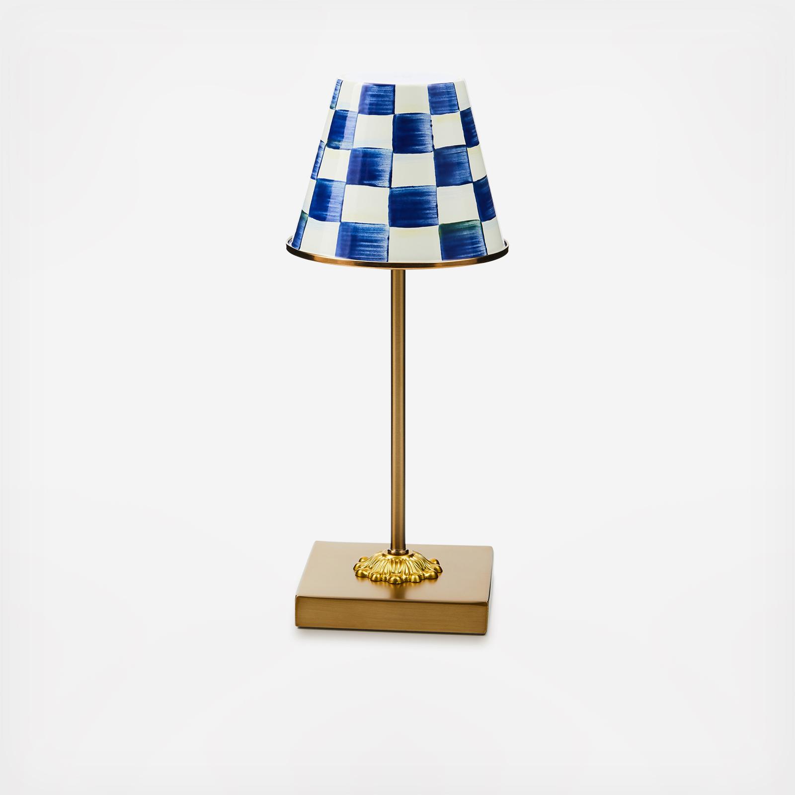 The Royal Check® Rechargeable LED Cafe Table Lamp is the little light that shines big without the inconvenience of cords. Featuring our blue check pattern on a brass-finish base, it illuminates for up to three hours and recharges with a 5-watt USB cable (included). It operates with ease by tapping the shade on the top, and there are three settings for brightness. Pieces may vary due to the handmade nature of each product.