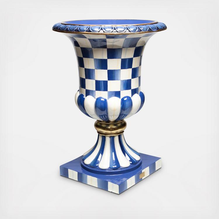 Elevate the presentation of our stacked seasonal accents with the weather-resistant Pedestal Urn. Crafted of durable fiberglass and resin, it is hand-painted with our signature Courtly Checks. There is a drainage hole in the bottom, so you can add your own plants as well.