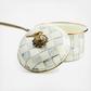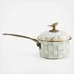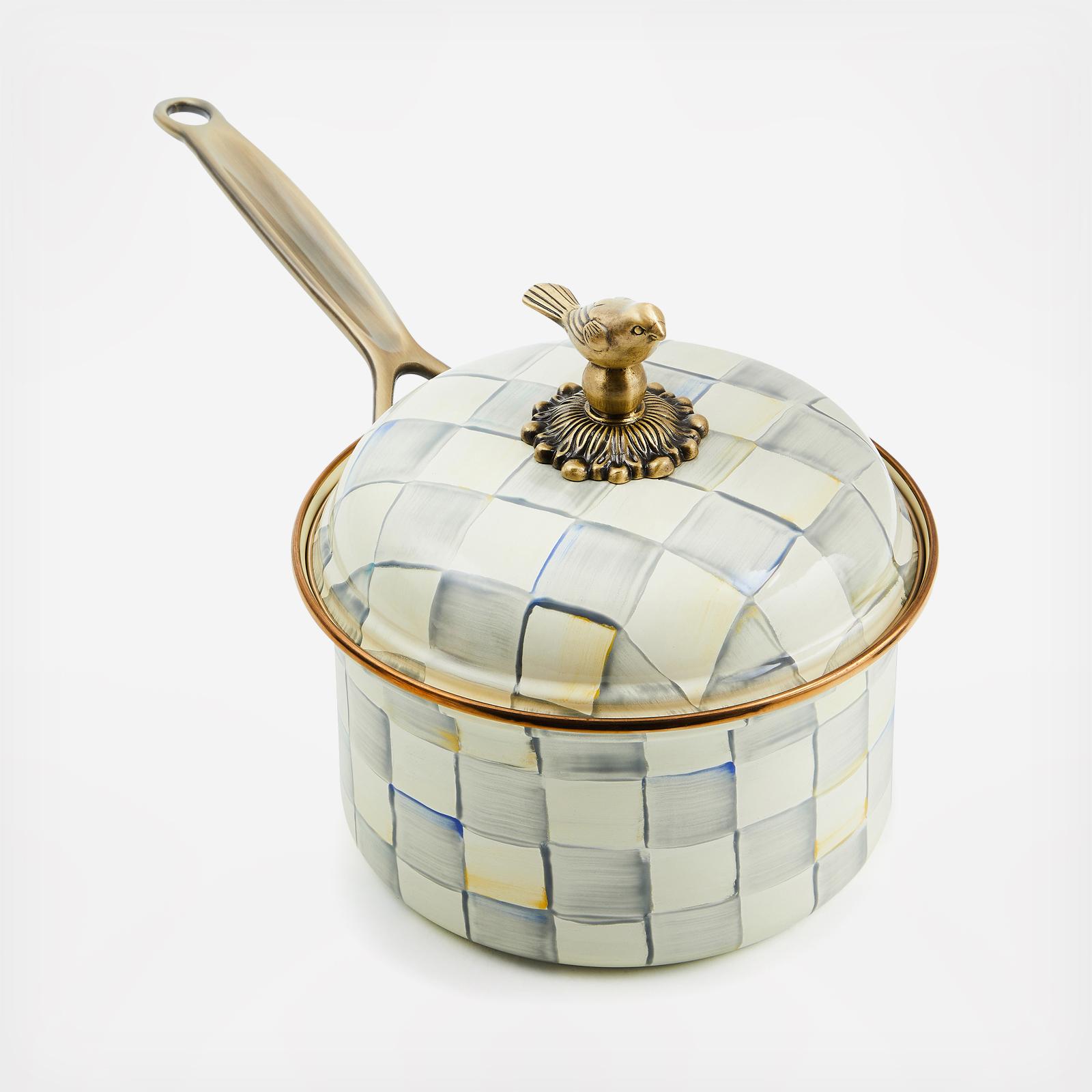From stovetop to tabletop, our Sterling Check® 2.5 Qt. Saucepan transitions with more than a dash of panache. Imagine how your signature sauces will stand out when served up in a dish bedecked with our grey and white pattern. And to top it all off, a sweet sparrow serves as a delightful knob, as unique as it is useful. Pieces may vary due to the handmade nature of each product.