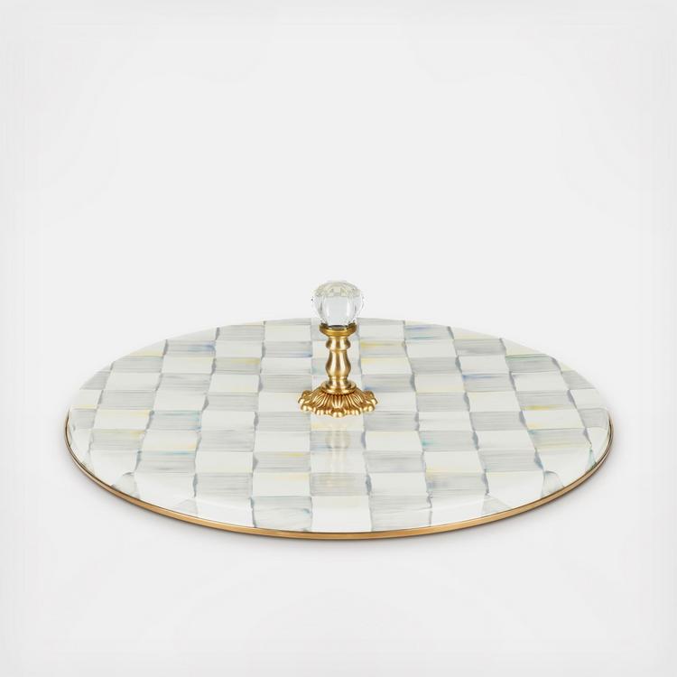Whether you are creating a charcuterie or presenting pastries, the Enamel Cheese Course serves with style. It features our hand-painted signature checks on a heavy-gauge, hand-glazed steel underbody, topped with a clear glass knob for easy handling.