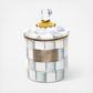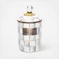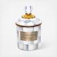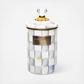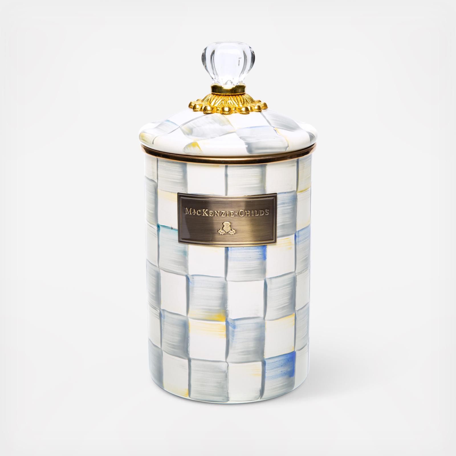 Pantry staples flour, sugar, and coffee, might seem the most obvious of contents with which to fill a Sterling Check Enamel Canister, but the possibilities are endless. Keep it in the kitchen with coffee beans and tea bags, cookies and candies, or dog biscuits and birdseed or invent new uses around the house. Each enameled steel canister is hand-painted with color-dragged checks in subtle shades of grey and topped with an elegant clear glass knob.