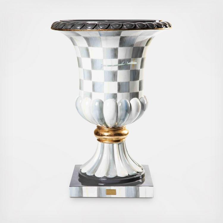 Elevate the presentation of our stacked seasonal accents with the weather-resistant Pedestal Urn. Crafted of durable fiberglass and resin, it is hand-painted with our signature Courtly Checks. There is a drainage hole in the bottom, so you can add your own plants as well.