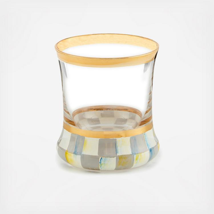 Bottoms up with our hand-painted Sterling Check® Shot Glass. This mouth-blown glass, featuring a base of Sterling Check, is trimmed with gold lustre. Pieces may vary due to the handmade nature of each product.