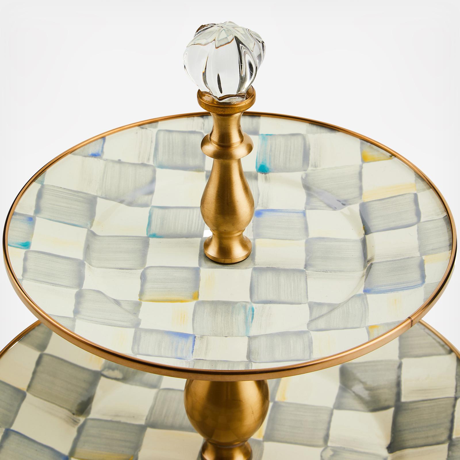 Covered in cupcakes for your princess’s party or scones and biscotti for your morning coffee club, the Sterling Check® Two Tier Sweet Stand is sure to stand out. Made of hand-painted enameled steel, it’s crowned with a coordinating knob.