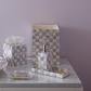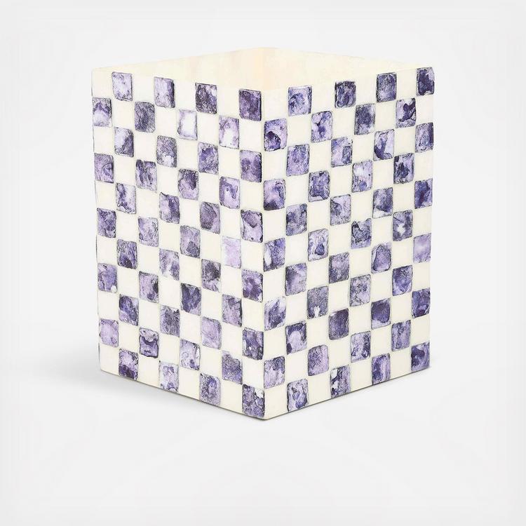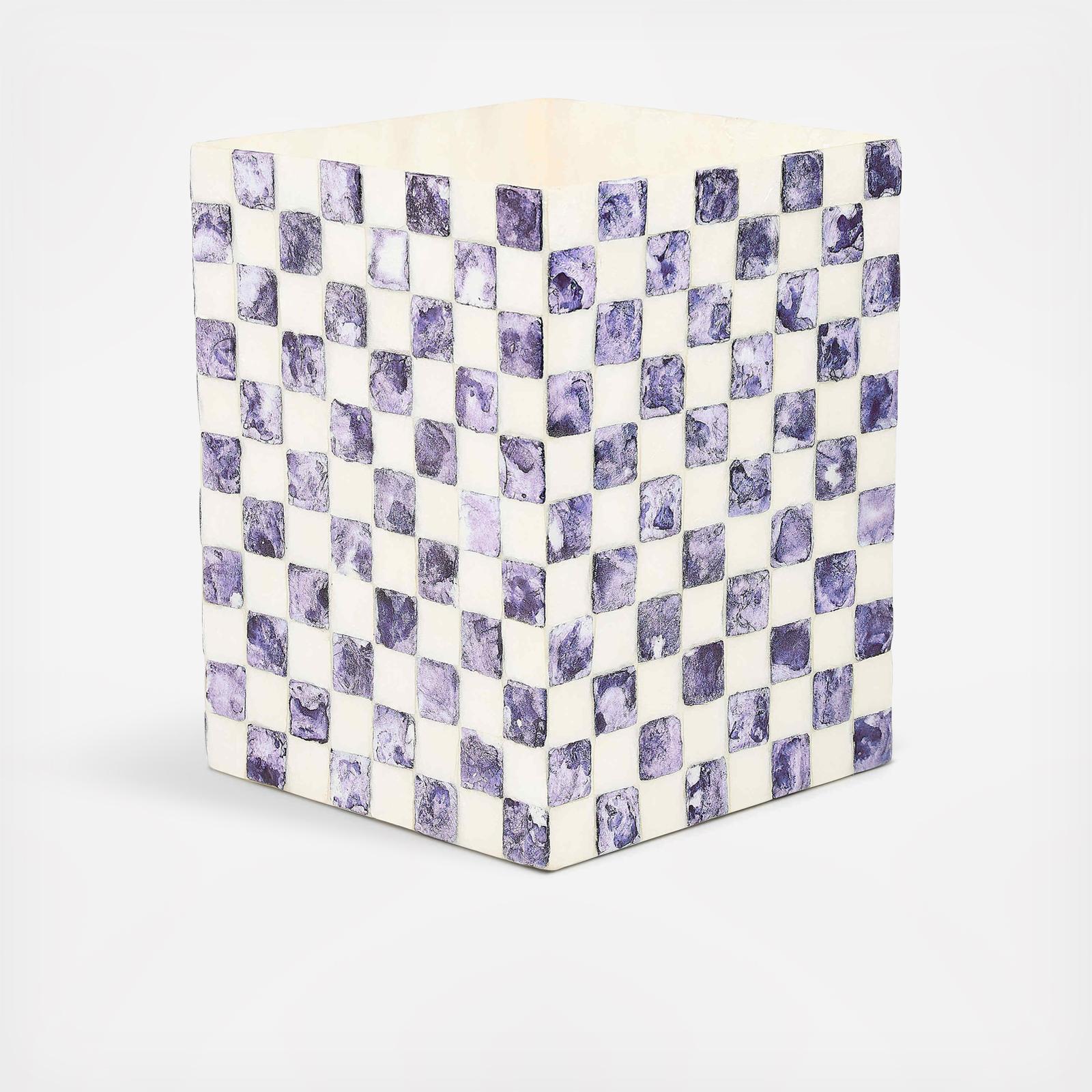 Dress up discards with the Violet Check Capiz Waste Bin. It’s decorated with an inlaid pattern of purple check capiz.