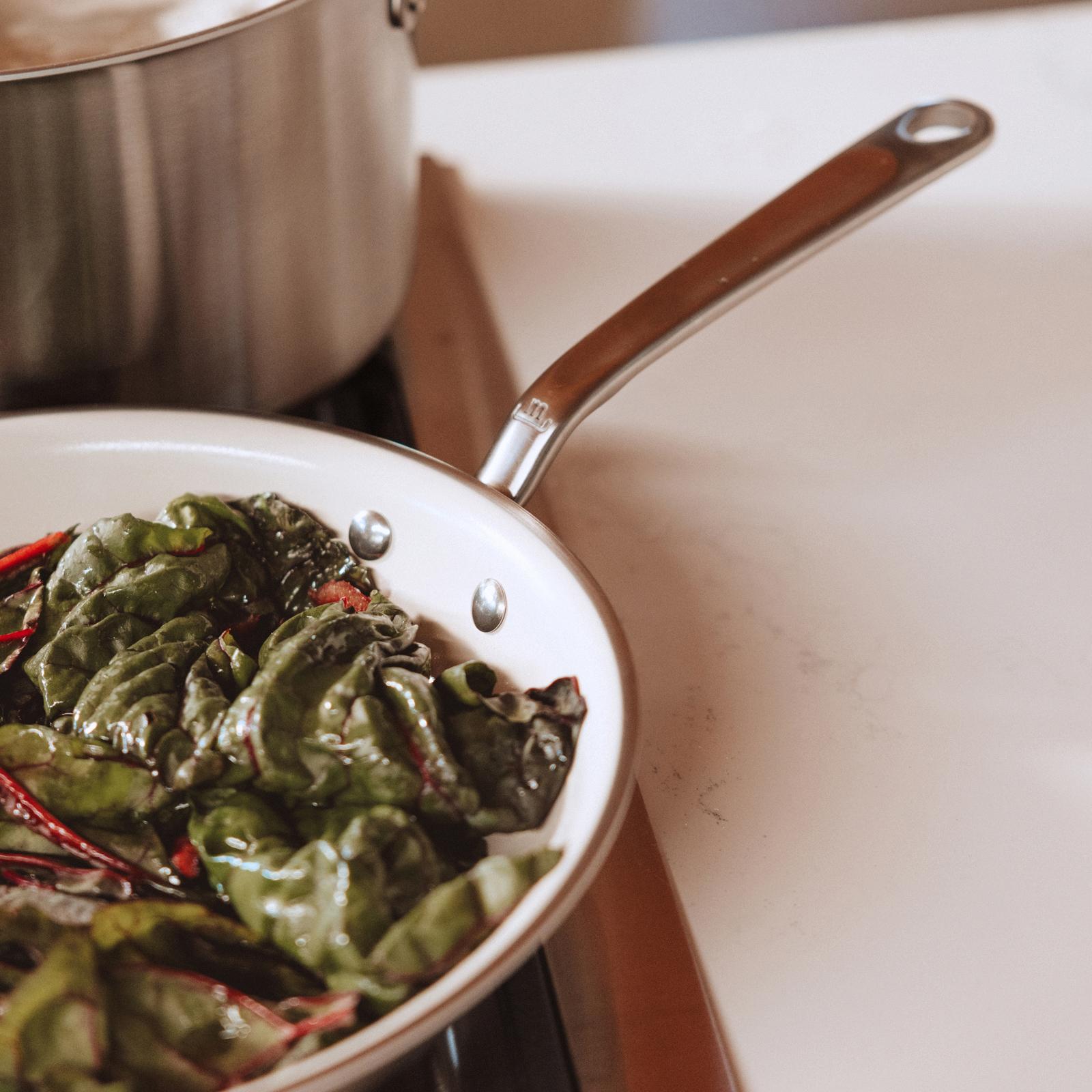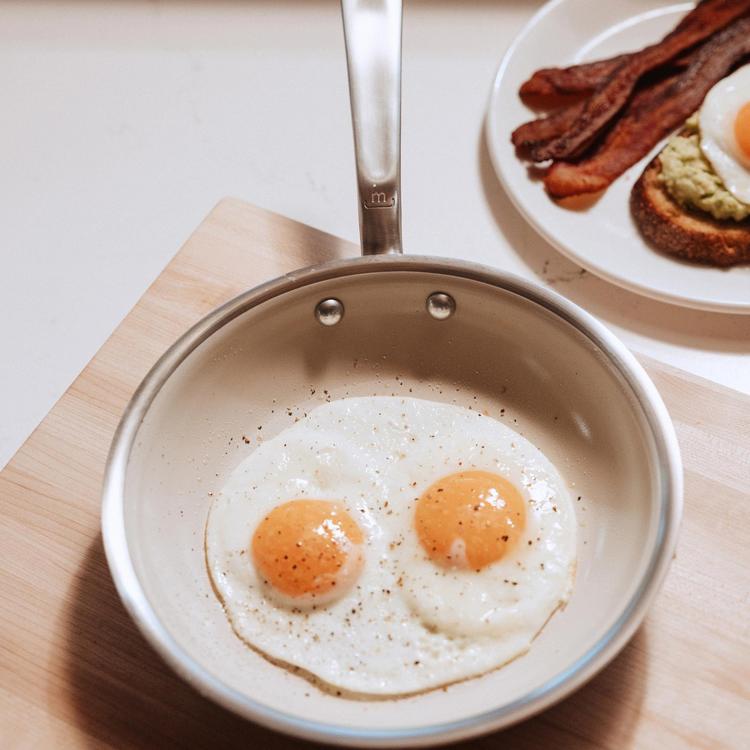 The first of its kind, the CeramiClad™ Frying Pan combines the even and responsive heat control of the Award Winning 5-Ply Stainless Clad Cookware with a proprietary Non Stick ceramic coating. Simple to use and just as simple to maintain, the American-Made ceramic coating is made without PFAS, PFOA, PTFE, lead, and cadmium, making for a clean staple that'll last longer than lower-cost counterparts.