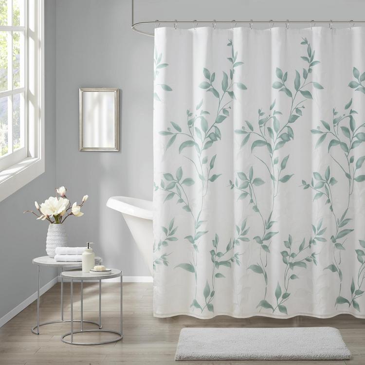 Transform your bathroom with the beauty of Cecily Printed Shower Curtain. The gorgeous shower curtain flaunts a stunning allover grey botanical design with burnout detailing for beautiful contrast and dimension. Non-absorbent water coat will help to bead water on fabric and glide down which provides quick dry and keeps fabric looking tidy, separate liner is still recommended and can be purchased seperately. Complete the look with coordinating Window panel, available and sold separately.