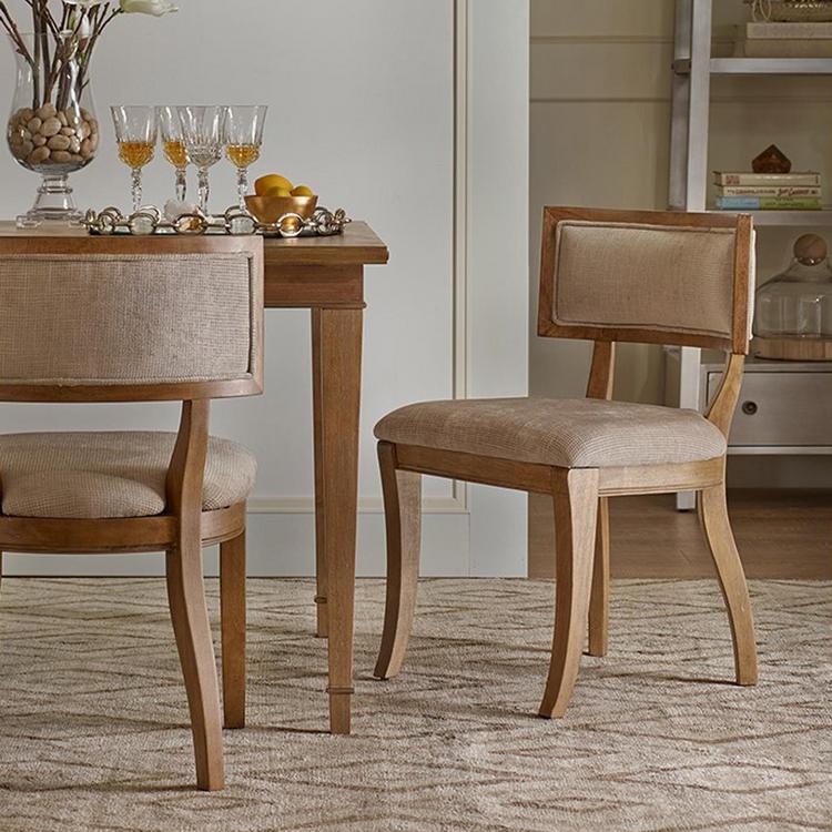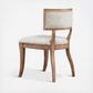 Classic design curved back dining chair in wire brushed birch finish with ceruse gives the Marie dining chair the feel of a french antique. Solid hardwood and the unique fabric blend will bring visual appeal to your dining room.