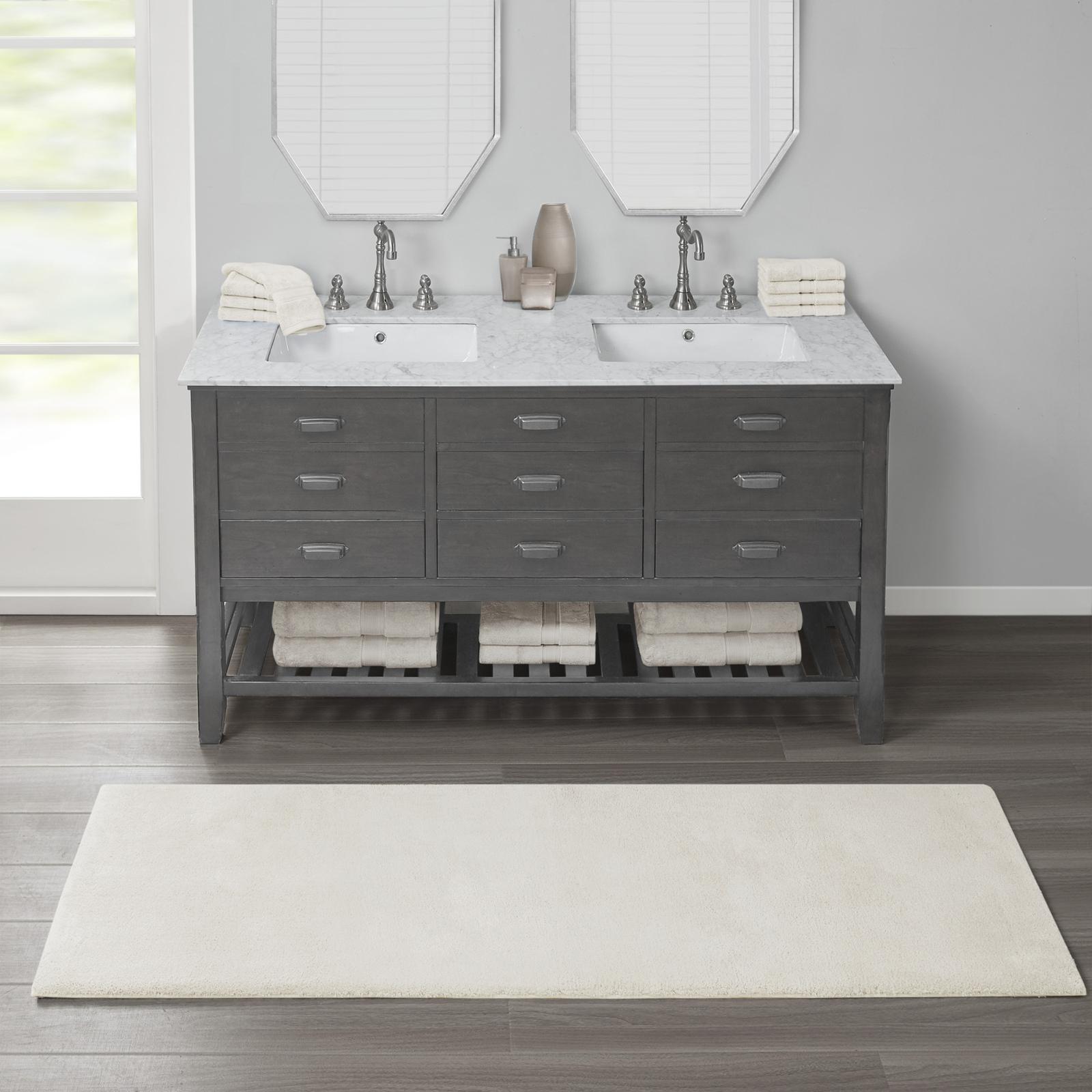 Experience the true feeling of luxurious comfort with our Madison Park Signature Marshmallow Bath Rug. This spa-quality bath rug is made of resilient high pile tufted microfiber for an incredibly plush feel, while also featuring a proprietary quick-dry technology keeping rug feeling soft and dry each time you step onto it. The heavy duty non-skid latex backing helps keep the rug in place throughout the day, while also making the rug skid resistant for better safety. This luxurious bath rug is also OEKO-TEX certified, meaning it does not contain any harmful substances or chemicals to ensure quality comfort and wellness. Machine washable for easy care, each bath rug comes in soft fade resistant colors for long lasting and multiple sizes to help complete any bathroom size and decor!