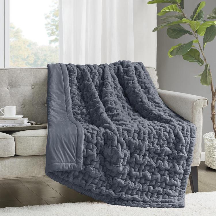 Add a modern and sophisticated touch to any space with the Madison Park Ruched Fur Throw. This throw features a solid ruched fur pattern, reversing to a faux mink to keep you warm and cozy. Machine washable for easy care, this throw is OEKO-TEX certified, Meaning it does not contain any harmful substances or chemicals to ensure quality comfort and wellness.