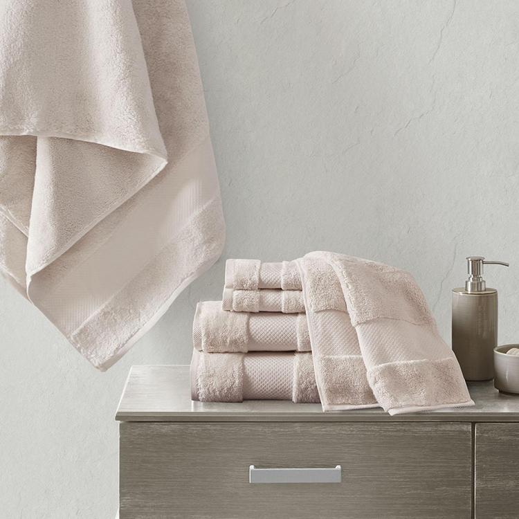 Elevate your bathroom decor with the luxuriously soft and indulgent comfort of the Signature Turkish Cotton 6-Piece Bath Towel Set. These oversized cotton towels are made from smooth low-twist yarns with 600gsm weight, creating a soft and plush hand feel that is also highly absorbent for the ultimate in luxury. Each towel features a dobby border and end hem to add a classic, yet refined touch to the design. Transform your bathroom into a relaxing spa-like retreat with this luxury complete 6-Piece bath towel set.