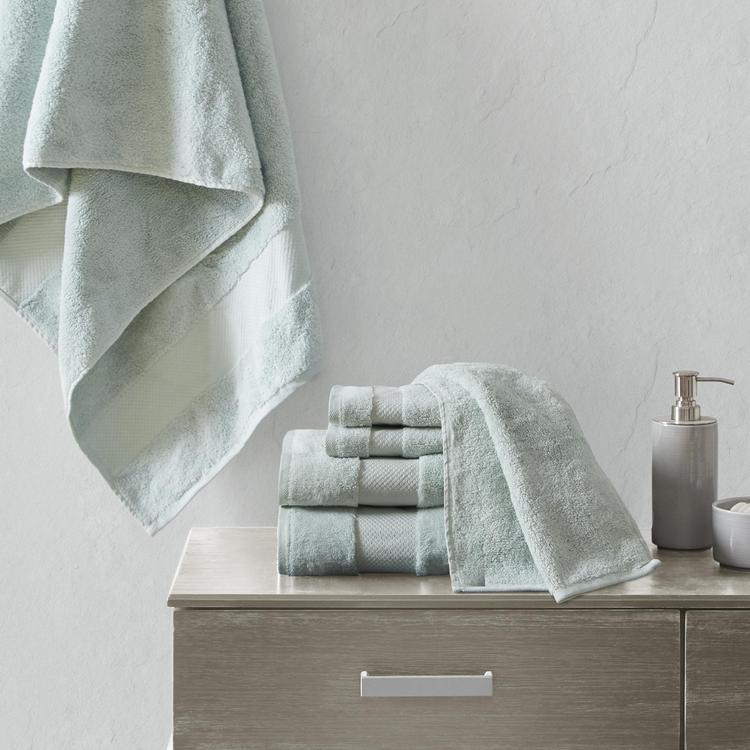 Elevate your bathroom decor with the luxuriously soft and indulgent comfort of the Signature Turkish Cotton 6-Piece Bath Towel Set. These oversized cotton towels are made from smooth low-twist yarns with 600gsm weight, creating a soft and plush hand feel that is also highly absorbent for the ultimate in luxury. Each towel features a dobby border and end hem to add a classic, yet refined touch to the design. Transform your bathroom into a relaxing spa-like retreat with this luxury complete 6-Piece bath towel set.