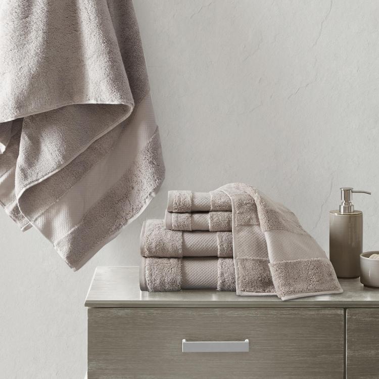 Elevate your bathroom decor with the luxuriously soft and indulgent comfort of the Signature Turkish Cotton 6-Piece Bath Towel Set. These oversized cotton towels are made from smooth low-twist yarns with 600gsm weight, creating a soft and plush hand feel that is also highly absorbent for the ultimate in luxury. Each towel features a dobby border and end hem to add a classic, yet refined touch to the design. Transform your bathroom into a relaxing spa-like retreat with this luxury complete 6-Piece bath towel set.