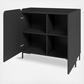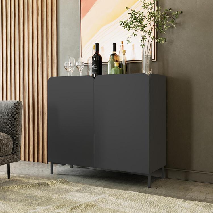 With its sleek, minimalist design, the Bogardus mid-century modern accent cabinet exudes an aura of contemporary sophistication. Crafted with clean lines and a monochromatic finish, it offers a timeless and understated elegance, making it an ideal choice for spaces that prioritize a refined, modern aesthetic. This cabinet features two soft close rounded doors with four fixed cubby shelves inside.