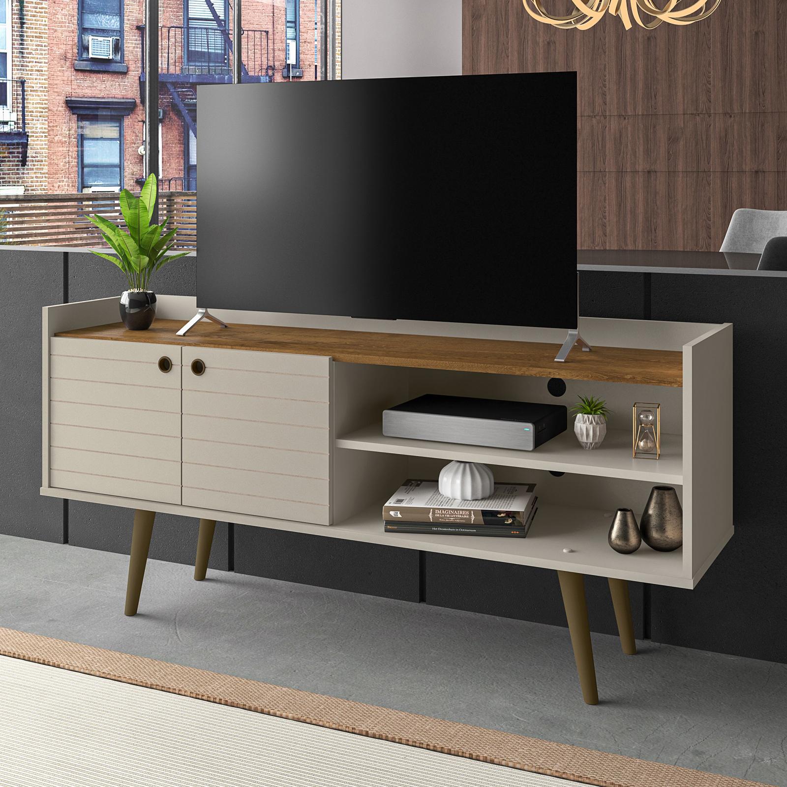 A timeless look for your entertainment space. The Bogart TV Stand hits all the marks of the design trifecta, eye-catching appearance, functionality, craftsmanship. The chic mid-century modern design is transitional to easily fit any home's decor. The cabinet style and open storage design offers plentiful space for gaming, streaming devices and cable management. The Bogart's high quality materials create a piece to last for years and years.