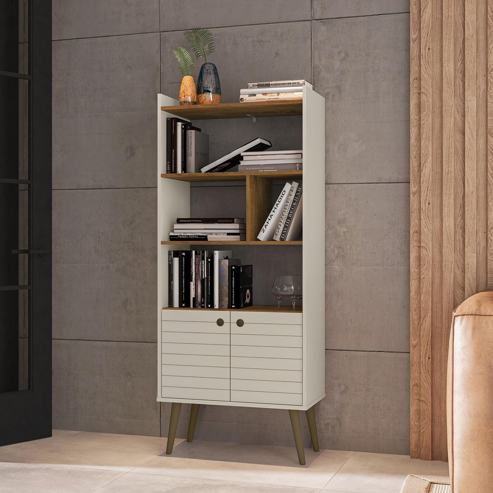 Swoon worthy design for the literary lover, the Bogart Bookcase creates an organized space to tuck away all your favorite novels. This 3-tier bookshelf has plenty of room to showcase your reading collection, as well as cherished knick-knacks and photos. The 2 door cabinet creates a clutter-free space to store vinyls, magazines, or games. The transitional mid-century modern design will be the perfect fit to any home's current decor.