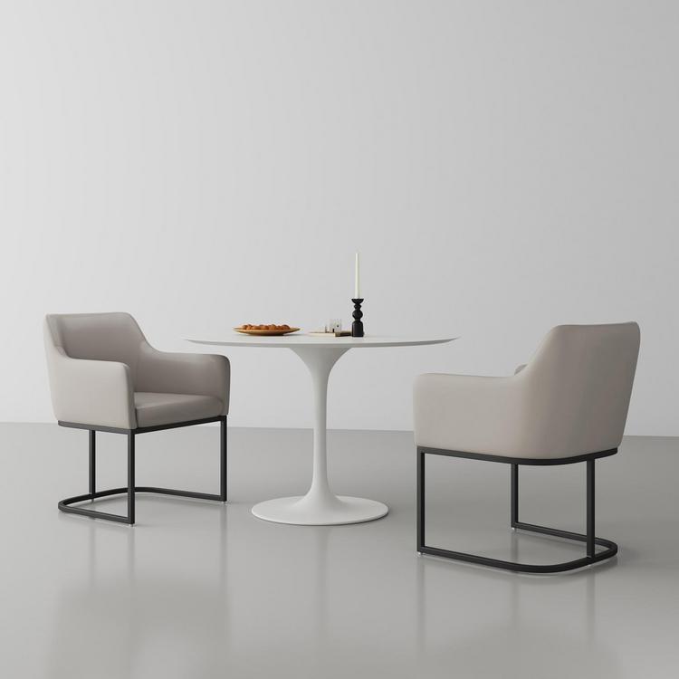 With a modern design and a hint of vintage inspiration, the Serena Dining Armchair has a simple chic profile with unexpected details. A slim geometric open base supports a plush foam-filled upholstered seat and back. The curved back creates an ergonomic shape that offers a comfy spot for family, friends, and dinner guests. The versatile design allows the Serena to effortlessly accent any style dining or living space. Delivered to you Fully Assembled! No Assembly Required!