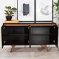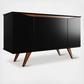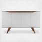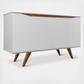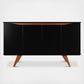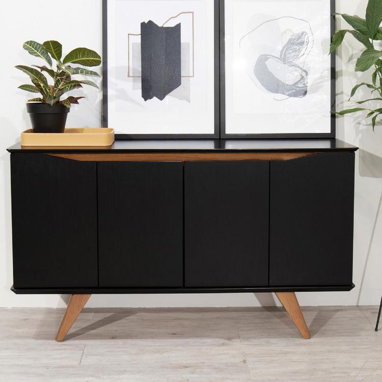 Add storage space to your dining area with the Tudor sideboard that celebrates Mid-Century design an style in all the right ways. Functional and beautifully designed, it doesn't compromise your space in style or practicality. Splayed legs add quirky classic feels, while curved cabinet doors conceal four large shelving area with ample space for tucking away dishes, tablecloths, and all your dinner party essentials. Complete your home with this focal point that blends and elevates any space with streamlined minimal design and maximum functionality to beautifully pair with any existing decor.