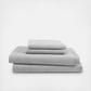 Dimensions (light gray, king): flat sheet: 108 x102 in.; fitted sheet: 78 x 80 in.; pocket: 13-16 in.; pillowcase: 20 x 40 in.