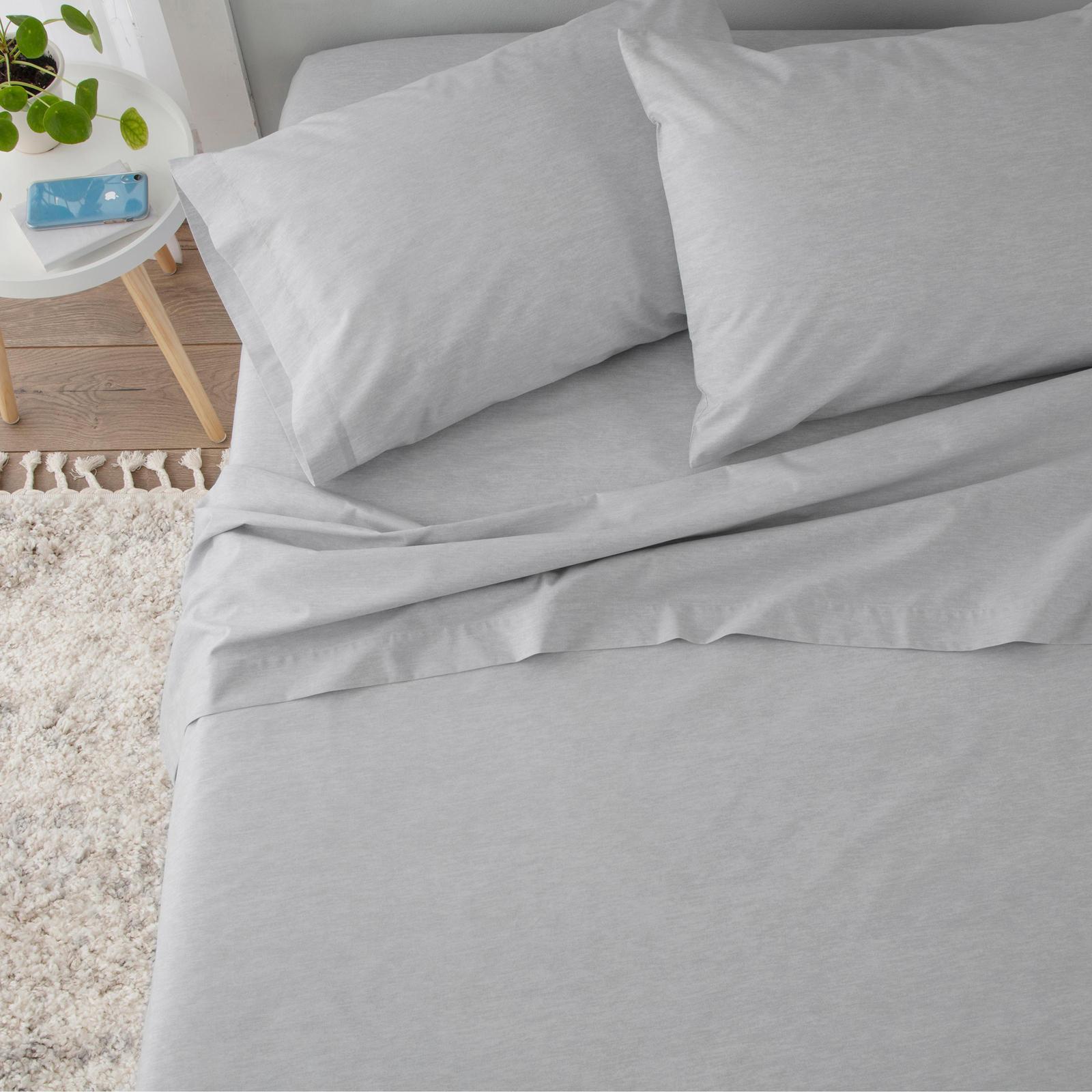This sheet set is a perfect choice for everyday use anywhere. Made in an easy-care cotton and polyester blend, the fabric is brushed for a wonderful soft-hand feel that's ideal for the cooler months of the year. The flat sheet and pillowcases feature 2 in. turn-back hems and the fitted sheet is elasticated with a 13 in. drop, which fits mattresses up to 16 in. deep.