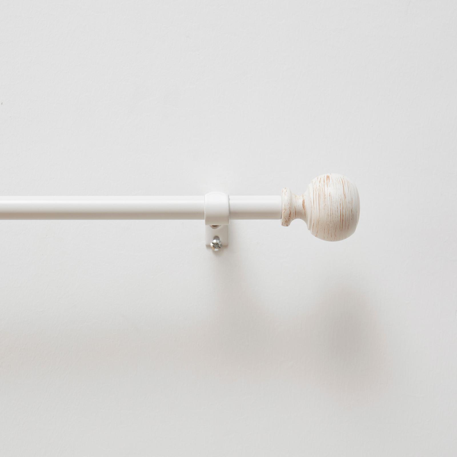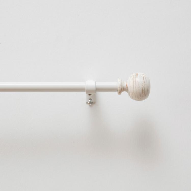 Drape your curtains easily using the Bergen Rod and Finial Set by Martha Stewart. The steel accessory has a washed wood look, lending interest and contrast to your windows. The ball finial finishes this look with a classic touch. Use the included hardware to mount this curtain rod and finial set in a few easy steps.