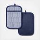 Refresh your kitchen essentials and decor with the Martha Stewart Honeycomb Chambray Textured Kitchen Collection. Whether you’re looking for kitchen towels, oven mitts, pot holders or table linens, this stylish collection will bring style and texture to your home. The Martha Stewart Honeycomb Quilted Chambray Pot Holder Set includes two decorative and functional pot holders. These heat resistant pot holders are durable, provide a flexible non-slip silicone grip, and protect your hands and surfaces while cooking or baking your favorite Martha Stewart recipes. Use while hosting and serving guests as a trivet or as an everyday kitchen essential while cooking. Made of machine washable Cotton, these oven mitts are easy to clean, dry and store with decorative hang loop.