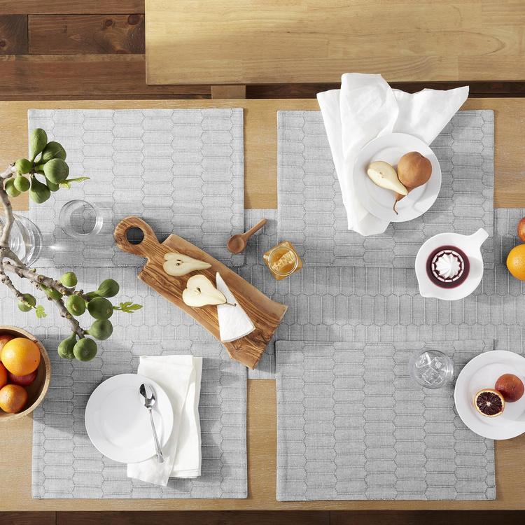 Add a beautiful textured look to your tablescape with the Modern Farmhouse Honeycomb Rectangle Placemat, Set of 4. The sophisticated honeycomb pattern will elevate your table setting. Crafted of a yarn dyed cotton-rich fabric that is durable for long-lasting use and will protect your tabletop and tablecloth. Perfect to use all year round for everyday dining, festive holiday gatherings and formal dinners.
