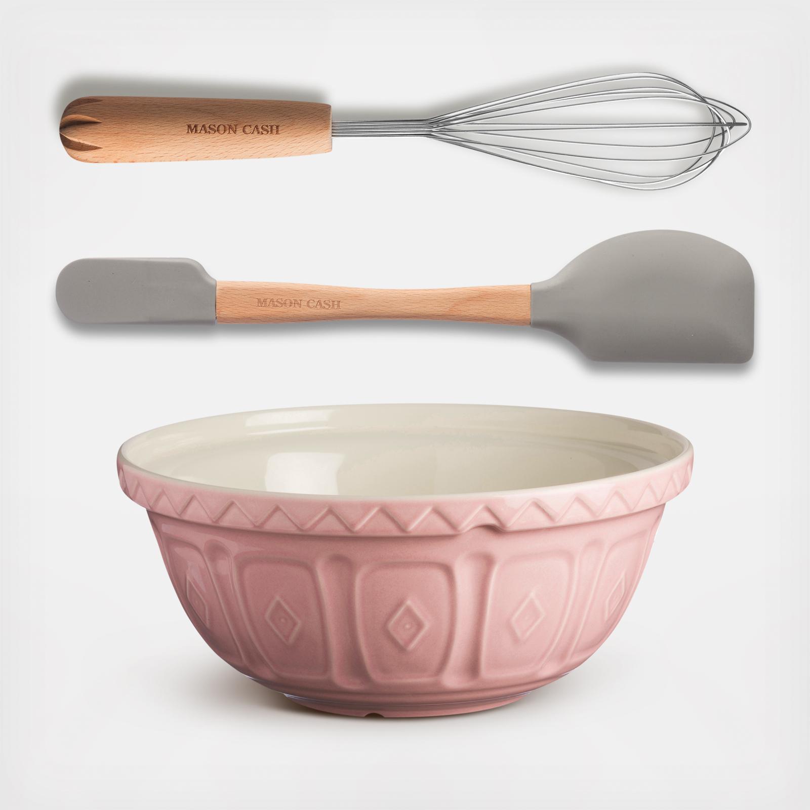 Prep your doughs and mix some color into your kitchen with the Color Mix 3-Piece Baker Set, bringing together Innovative kitchen utensils and the classic mixing bowl. A design classic, the mixing bowls were first developed in 1901, but are still as relevant today, the mixing bowl is light enough to hold in one arm while mixing, but sturdy enough when using on the counter top, making it the perfect bowl for home or professional bakers. The distinct patterned exterior and rim is designed to help bakers grip and tip the bowl, while the wide shallow shape allows for kneading within the bowl. Mixing bowl is perfect for bread, cake, cookie, pastry and pudding mixes. Innovative Kitchen range has been designed to offer multi-function to home bakers and cooks to give perfect results every time. The Baker's spoon with jar scraper is ideal for beating, stirring and blending. This 3-in-1 utensil features measurements for 1 tablespoon, 1 teaspoon and 1/2 teaspoon on the spoon head and a jar scraper and spatula on the handle. The Whisk and Reamer is a specially designed 2-in-1 Utensil. The balloon whisk is perfect for whisking eggs, cream and cake mixtures and the reamer handle is perfect for juicing lemons and limes.