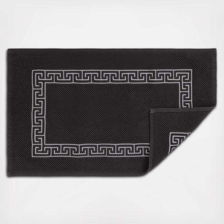 Adelphi's signature geometric frame embroidery is stitched onto our sublime Reverie rug. Sitting at the crossroads of classic and contemporary, Adelphi is our only stocked bath embroidery available on a solid colored base – making it all the more special.