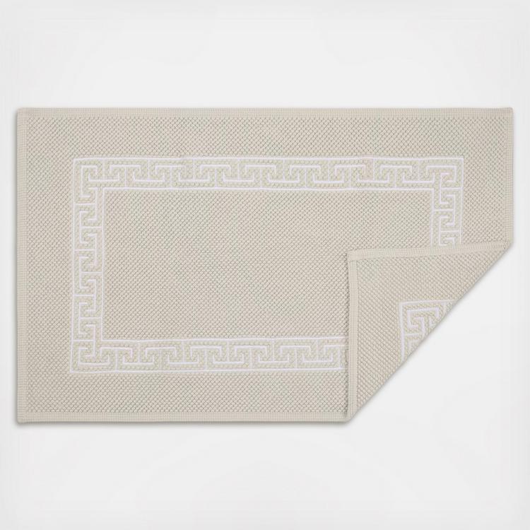 Adelphi's signature geometric frame embroidery is stitched onto our sublime Reverie rug. Sitting at the crossroads of classic and contemporary, Adelphi is our only stocked bath embroidery available on a solid colored base – making it all the more special.