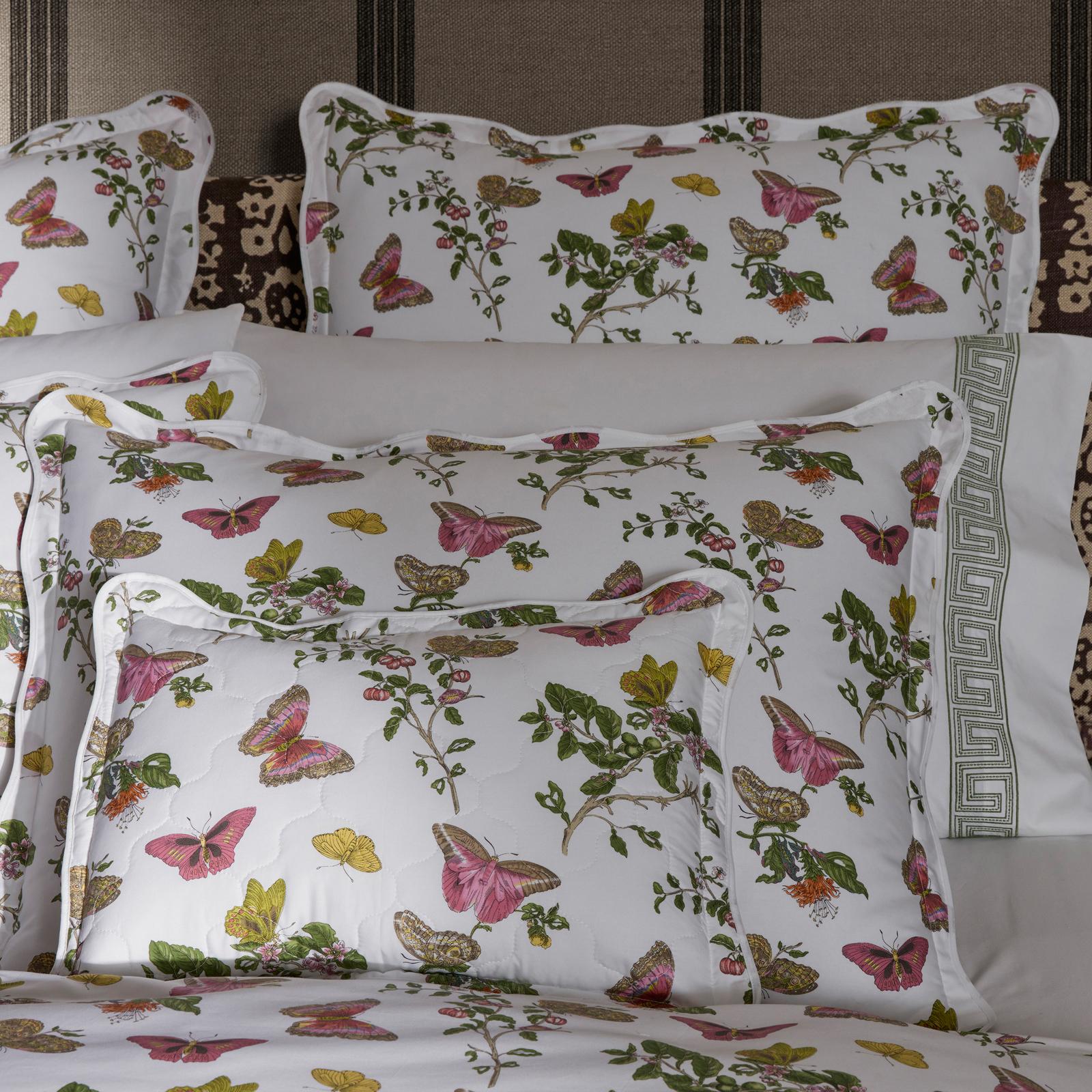 Baudin Butterfly is a delightful Matouk Schumacher print with an enchanting mix of butterfly and botanical motifs. It’s elegantly finished with a scalloped trim, adding an extra note of refinement. Pair Matouk's Baudin Butterfly bed linens with the matching Baudin Butterfly Fitted Sheet. Luca 500 thread count 100% Egyptian cotton percale.