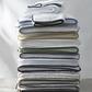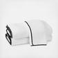 Soft, plush and absorbent, very fine, long staple cotton with a contrasting color piped trim. 625 GSM.