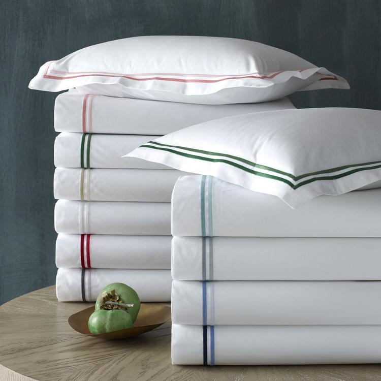 350 thread count Sierra sheeting is accented with a pair of crisp lines of satin stitch embroidery in colors from subtle to cheerful. Essex brings a smart, European hotel feel and modern, elegant air to the bedroom. Pair Essex bed linens with the matching Sierra Fitted Sheet. All of the fabrics are OEKO-TEX Standard 100 certified, meaning these are safe for you and for the planet.