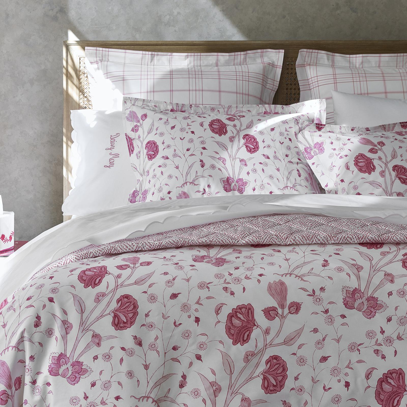 Khilana, a delightful, large-scale floral inspired by traditional Indian hand-block textiles, is a divine addition to the Schumacher collection. It begins with our 500 thread count Luca percale, printed in Italy in a refined blue colorway, and is finished in our Massachusetts factory, where they craft a flange with a unique double satin stitch along the outer and inner edges.
