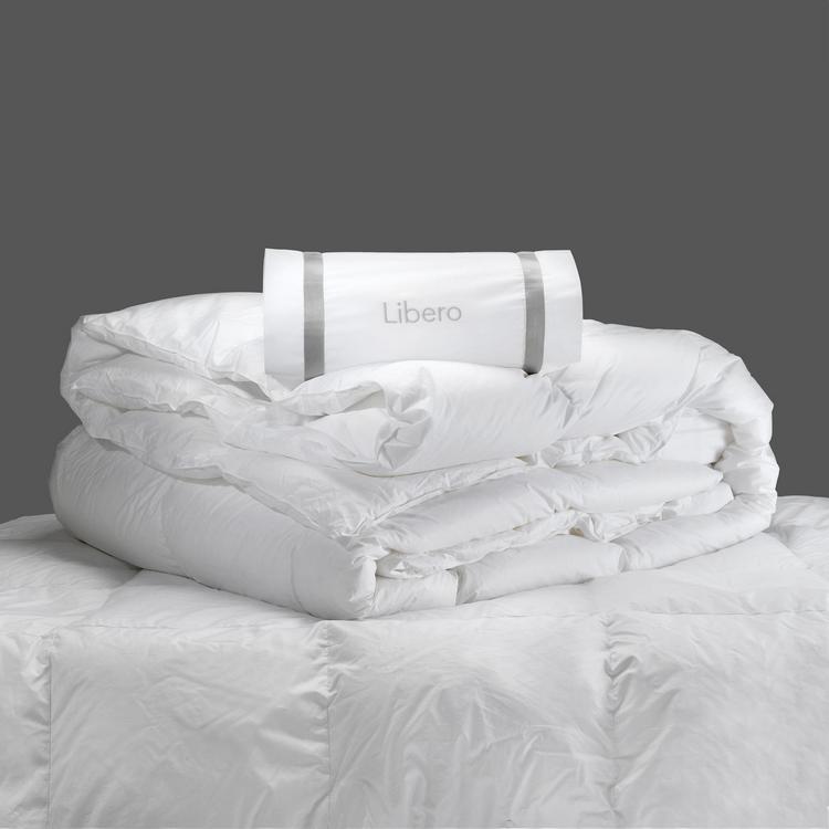 These hypoallergenic down-free comforters are made using a fine fiber that adapts to body temperature. Thinner and stronger than silk, this fill provides softness, warmth, and comfort equal to that of down. Libero features a cotton percale shell.