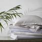 Matteo provides sophisticated top-of-bed options that evoke elegant menswear fabrics. The interpretation is seersucker with a neutral, two-toned stripe and finished with a 1-inch flange. You'll love its dapper look as a duvet, shams, and a quilt with a 4-inch diamond stitch pattern.