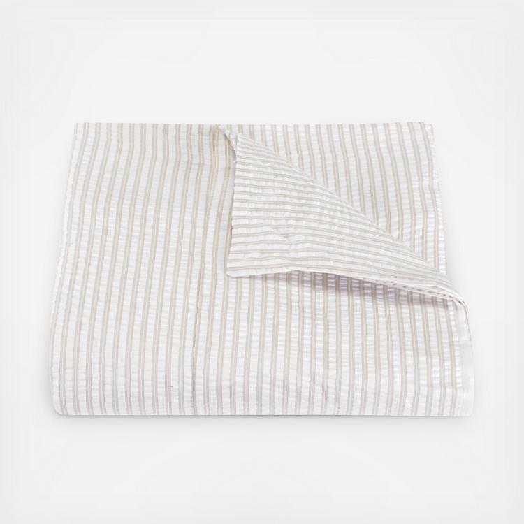 Matteo provides sophisticated top-of-bed options that evoke elegant menswear fabrics. The interpretation is seersucker with a neutral, two-toned stripe and finished with a 1-inch flange. You'll love its dapper look as a duvet, shams, and a quilt with a 4-inch diamond stitch pattern.