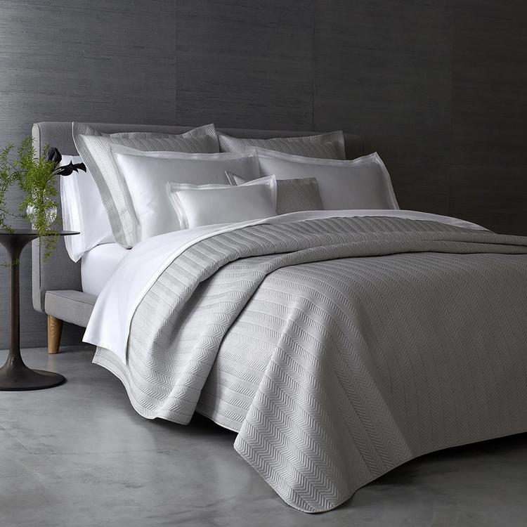 Netto puts a twist on a traditional quilt pattern, creating an array of paneled chevron rows. To give it a light, lofty weight and silky-smooth touch, it's crafted from Talita, our 615 thread count Giza Egyptian cotton sateen. Netto is a perfect complement to our Talita Satin Stitch collection.