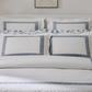 Inspired by an intricately beaded Schumacher tape, our boldly embroidered Ophelia Collection embodies a traditional Greek key pattern with a bespoke sensibility. In 520 thread count Ceylon sheeting, it’s a playful, exuberant take on a traditional motif.