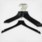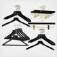 Enjoy this luxuary German-made clothing hangers. This series was created with a contemporary feel and contour. Each hanger is made in German of the finest quality on the market. The hanger collection is finished with a waterbase and is environmentaly friendly. This Metropolis series was created with a modern look. Hooks without a ball end and opening. Hooks have a reliable 360 degree turn that is sure to last. Each hanger is 17½ inchs wide. The adjustable pant clips are easy to pinch while appling the correct amount of pressure to ensure your clothing stay on the hanger.
