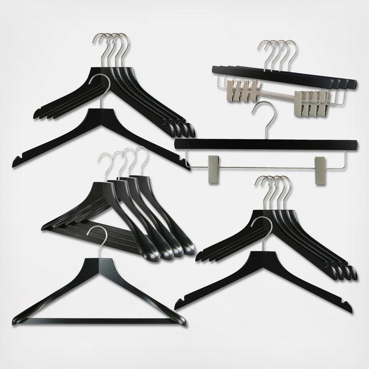 Enjoy this luxuary German-made clothing hangers. This series was created with a contemporary feel and contour. Each hanger is made in German of the finest quality on the market. The hanger collection is finished with a waterbase and is environmentaly friendly. This Metropolis series was created with a modern look. Hooks without a ball end and opening. Hooks have a reliable 360 degree turn that is sure to last. Each hanger is 17½ inchs wide. The adjustable pant clips are easy to pinch while appling the correct amount of pressure to ensure your clothing stay on the hanger.