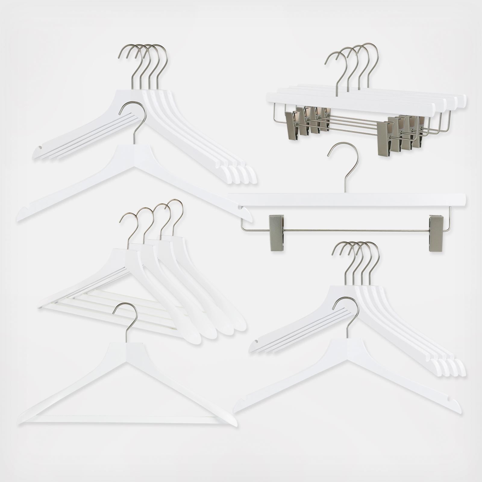 Enjoy this luxuary German-made clothing hangers. This series was created with a contemporary feel and contour. Each hanger is made in German of the finest quality on the market. The hanger collection is finished with a waterbase and is environmentaly friendly. This Metropolis series was created with a modern look. Hooks without a ball end and opening. Hooks have a reliable 360 degree turn that is sure to last. Each hanger is 17½ inchs wide. The adjustable pant clips are easy to pinch while appling the correct amount of pressure to ensure your clothing stay on the hanger.