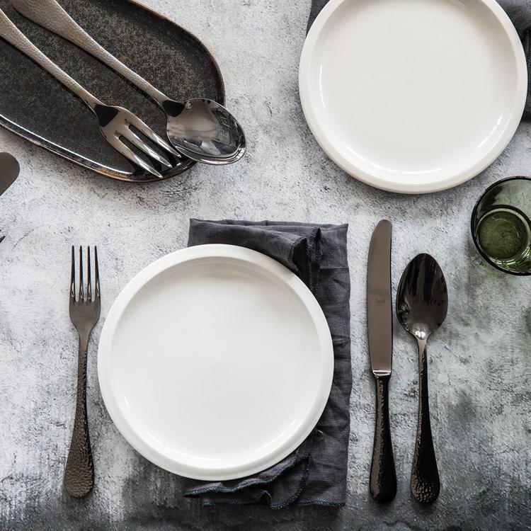 Made in Italy with the highest quality of 18/10 stainless steel, 4,0 mm thick, very durable, ergonomic. Knives have double serration for a durable sharpness. Enhance your dining experience with this beautiful Italian flatware! Stainless Steel is coated with PVD Titanium Coating. Tested and guaranteed for more than 1000 washes in commercial dishwasher. The special Titanium Plating Process, Originaly developed by NASA, gives to the surface of Stainless Steel an extra-hardness and makes it dishwasher safe. The finish is durable, inoxidable, dishwasher safe and food safe. The production process is not galvanic and do not produce pollution.